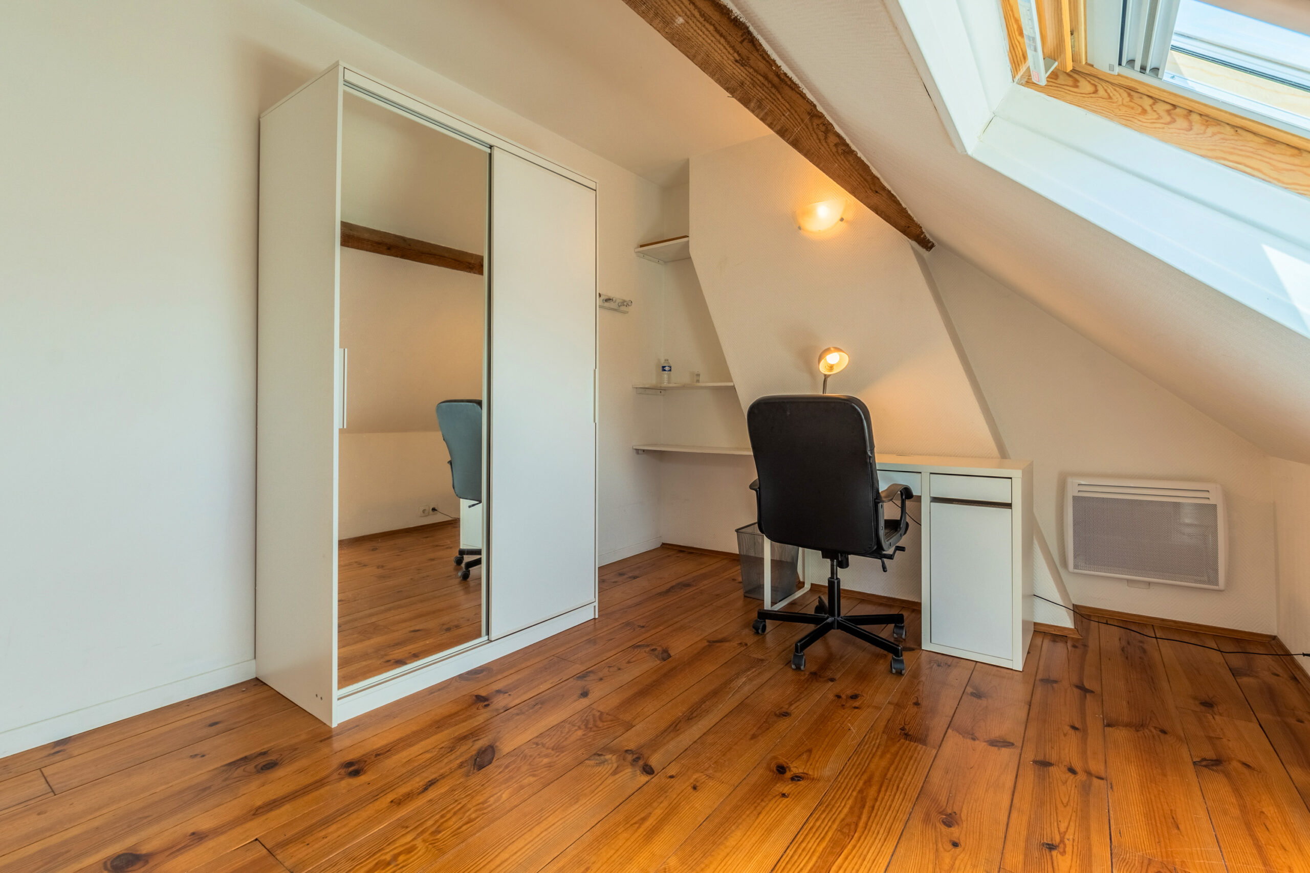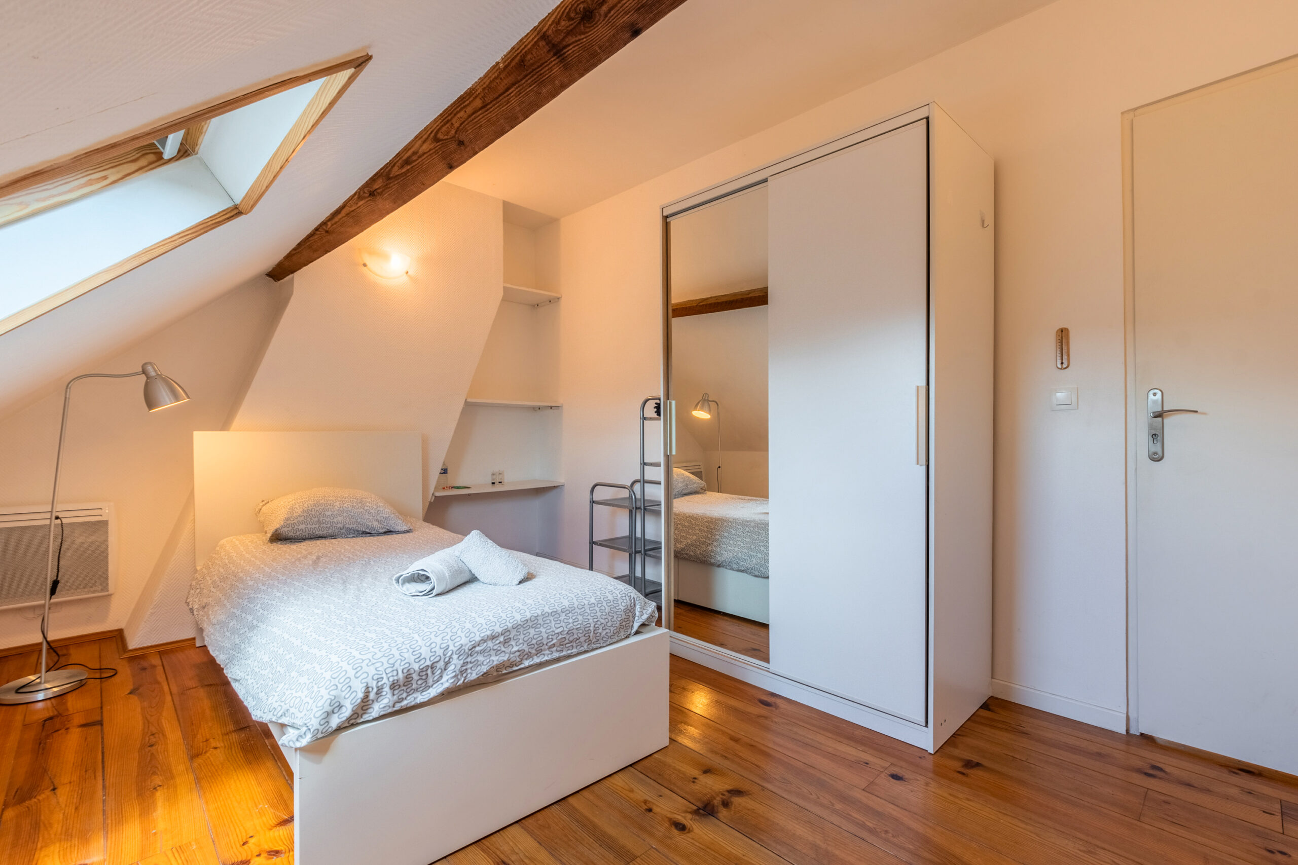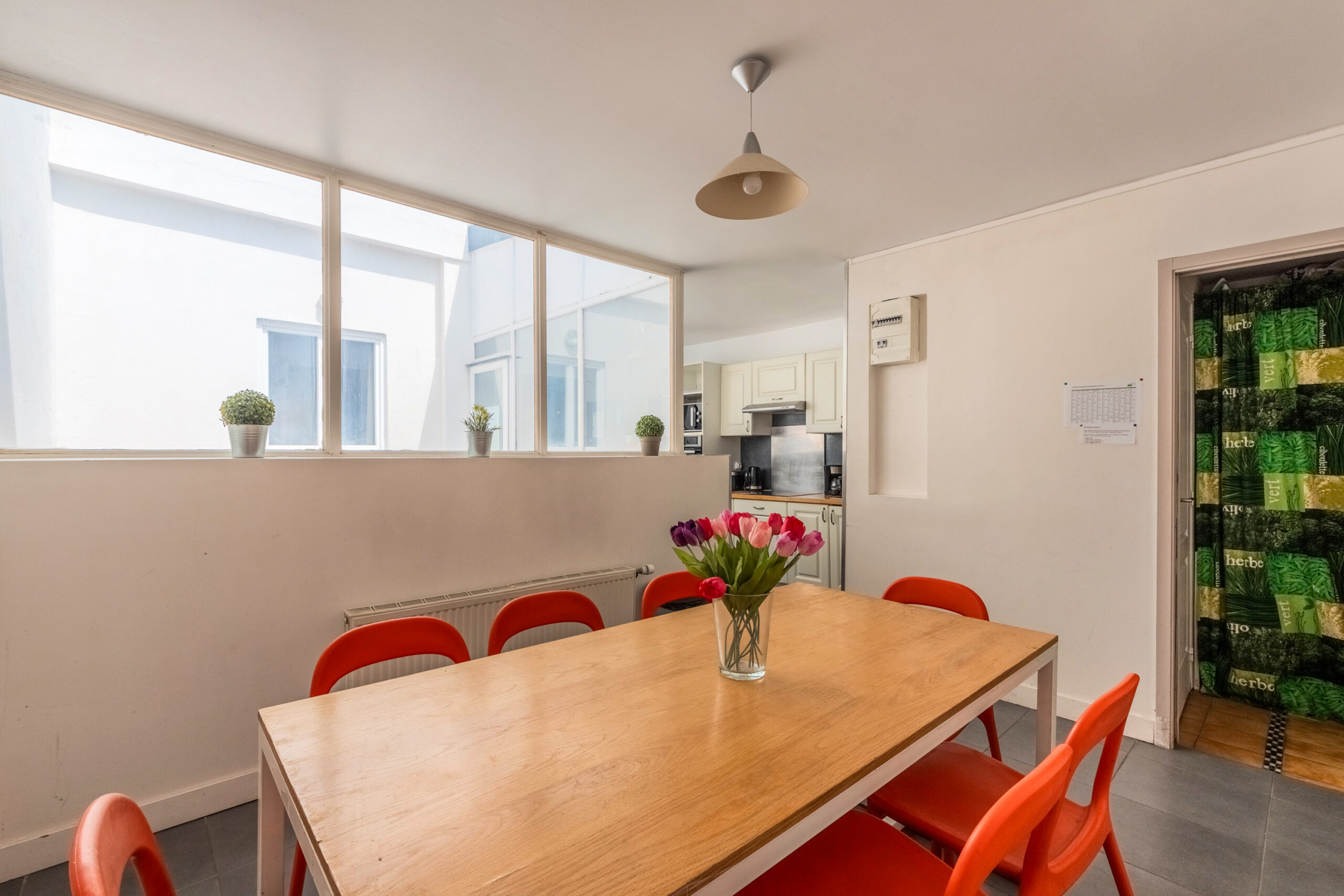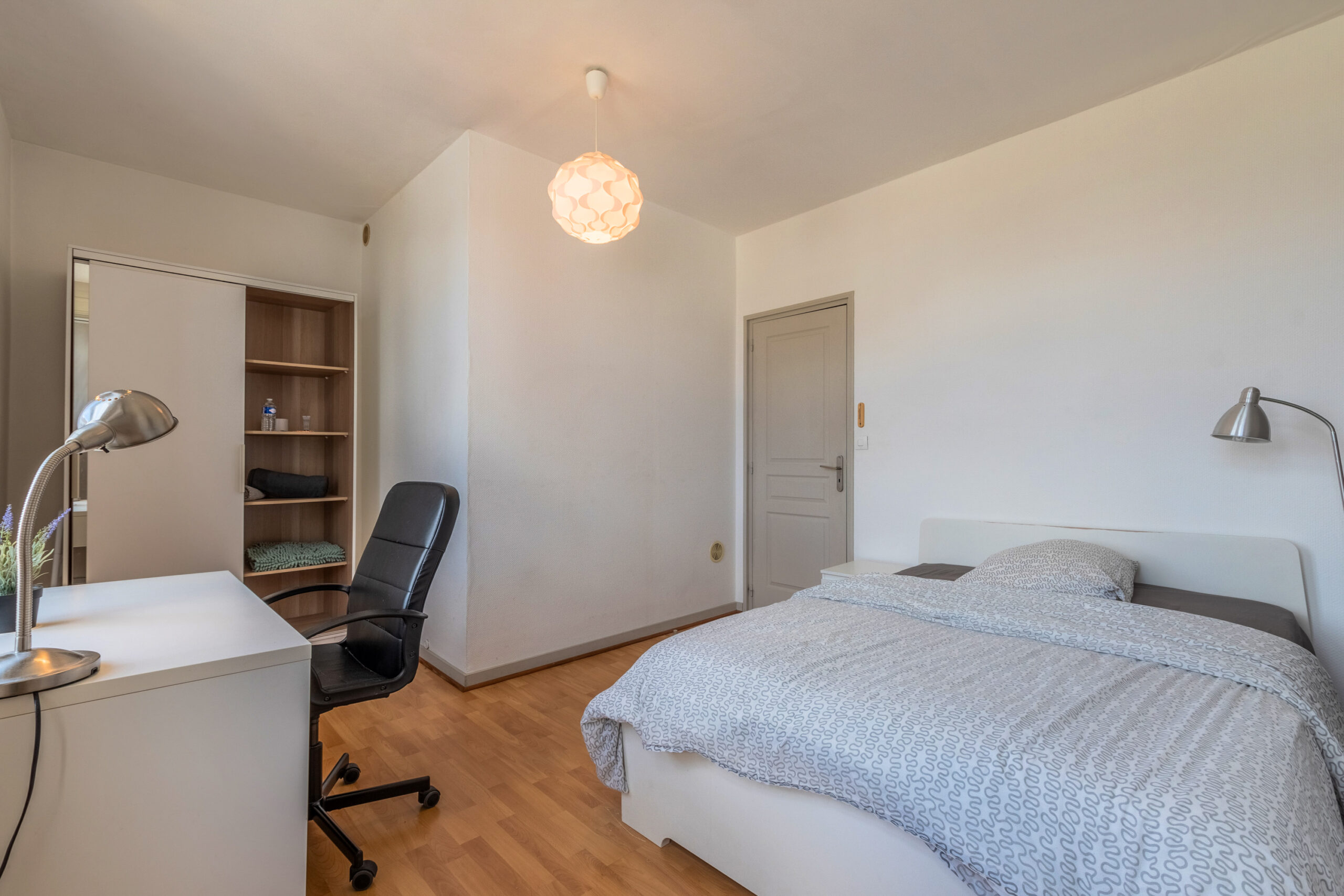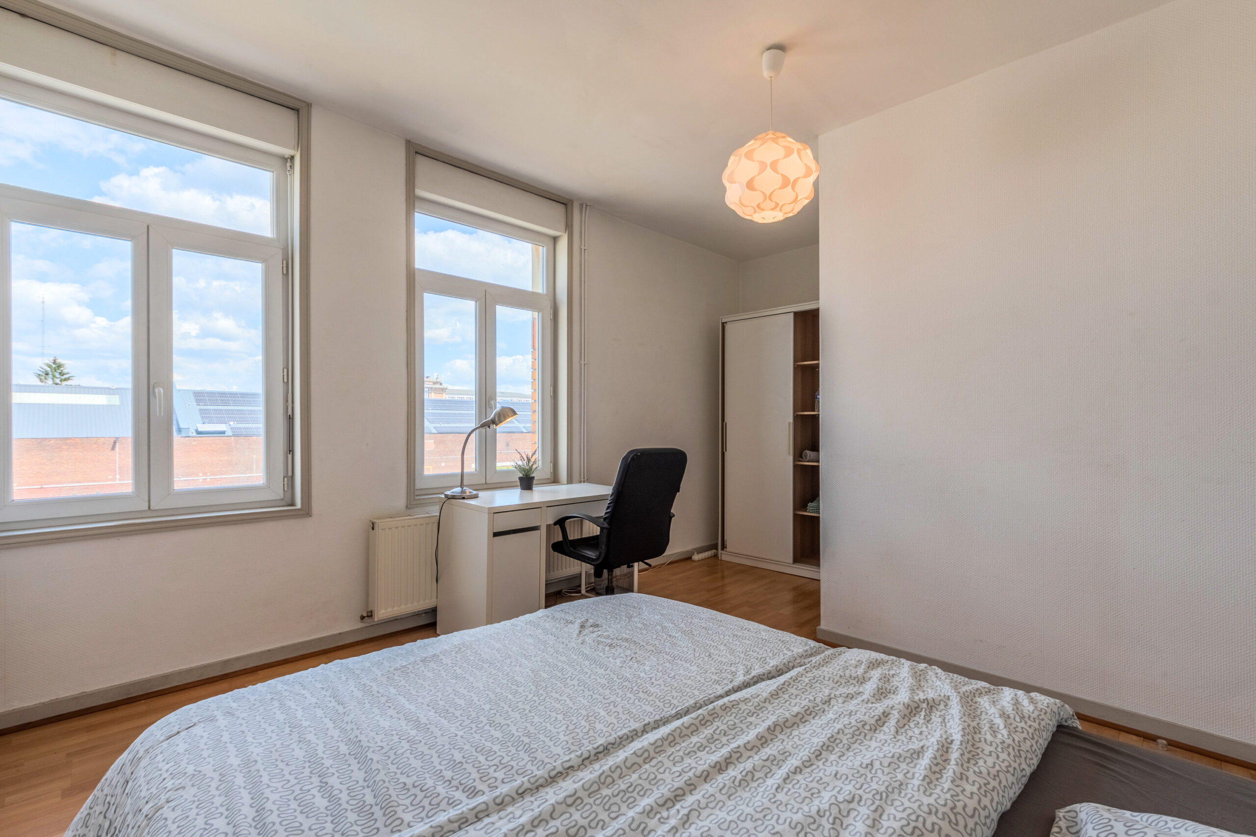 Cette maison entièrement rénovée de 160 m², située en plein cœur de Lille, propose 9 chambres privatives, chacune équipée d’un lit avec rangements, d’une couette, d’un oreiller, d’un bureau, d’une chaise, d’une penderie, d’un miroir, d’un panier et d’étagères.